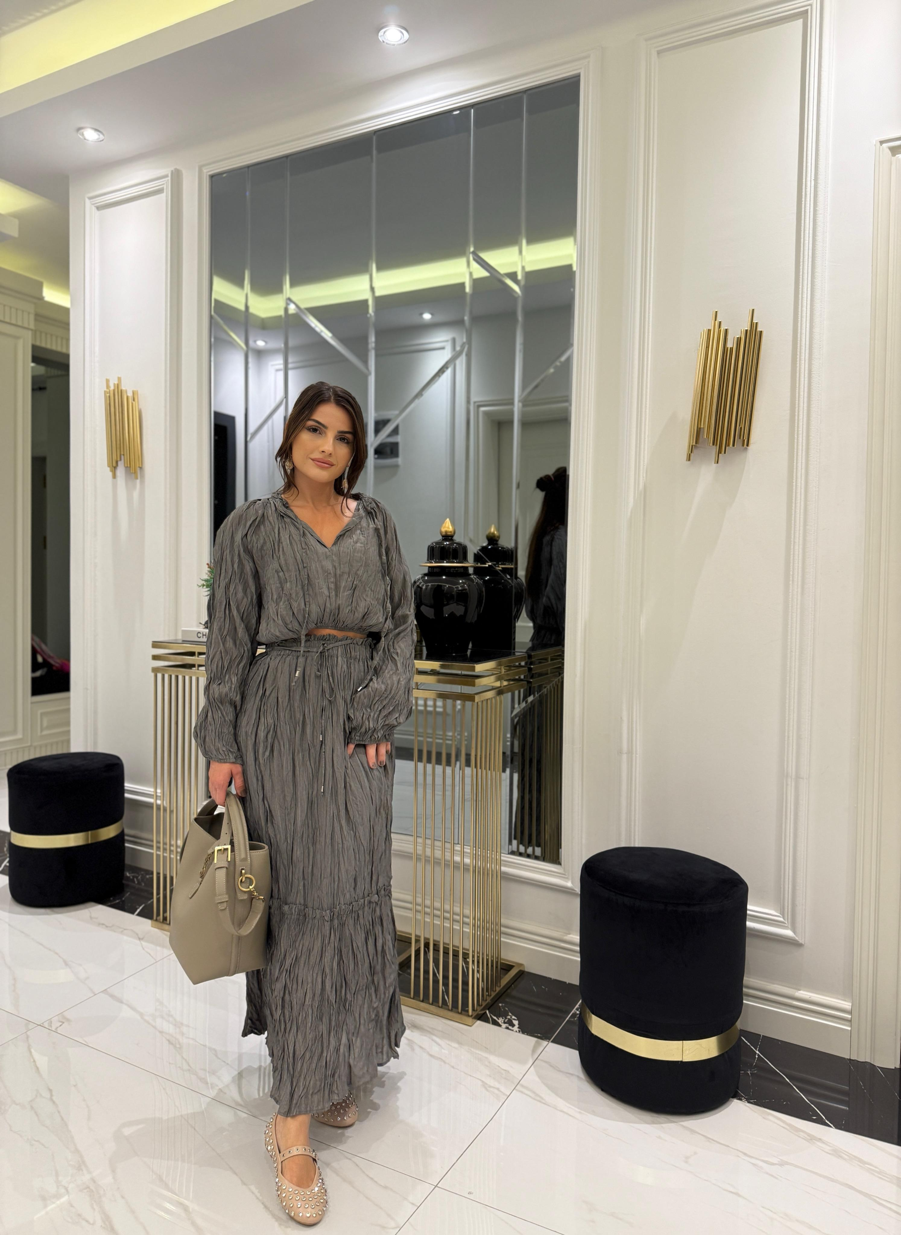 Antrasit Zr Model Kırışık Etek Bluz Takım