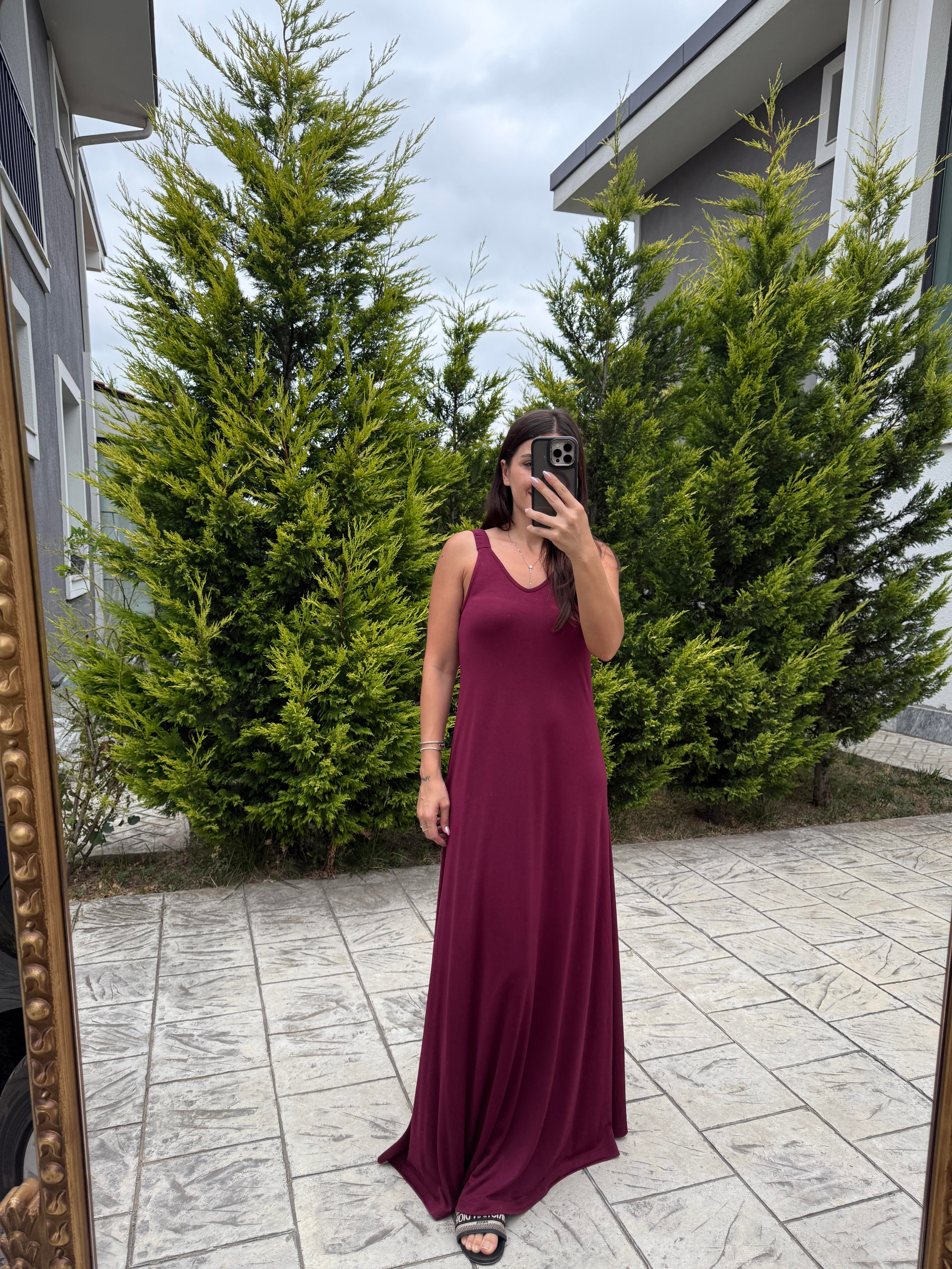 Mürdüm Askılı Modal Maxi Elbise