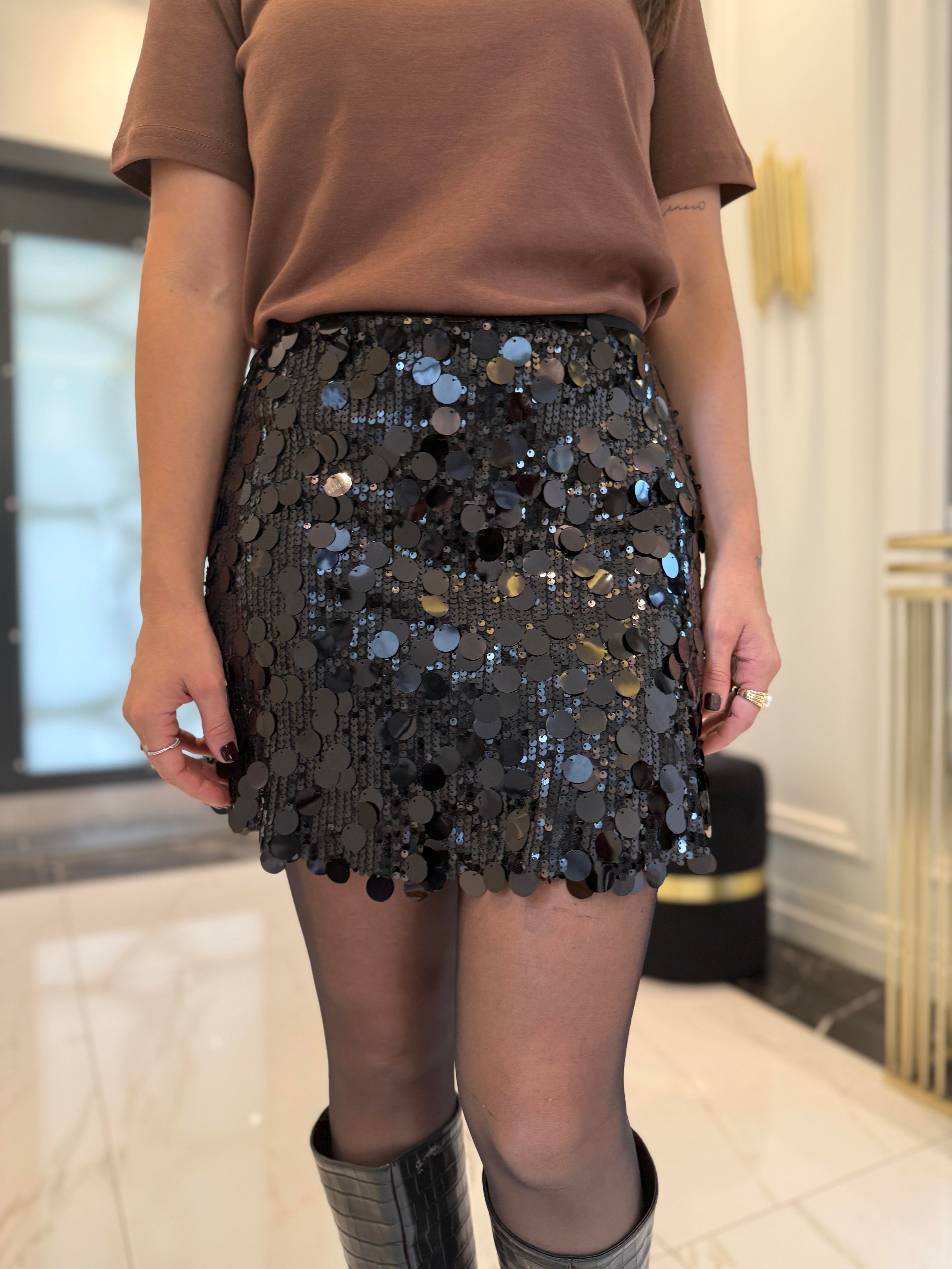Siyah Boncuk İşlemeli Etek