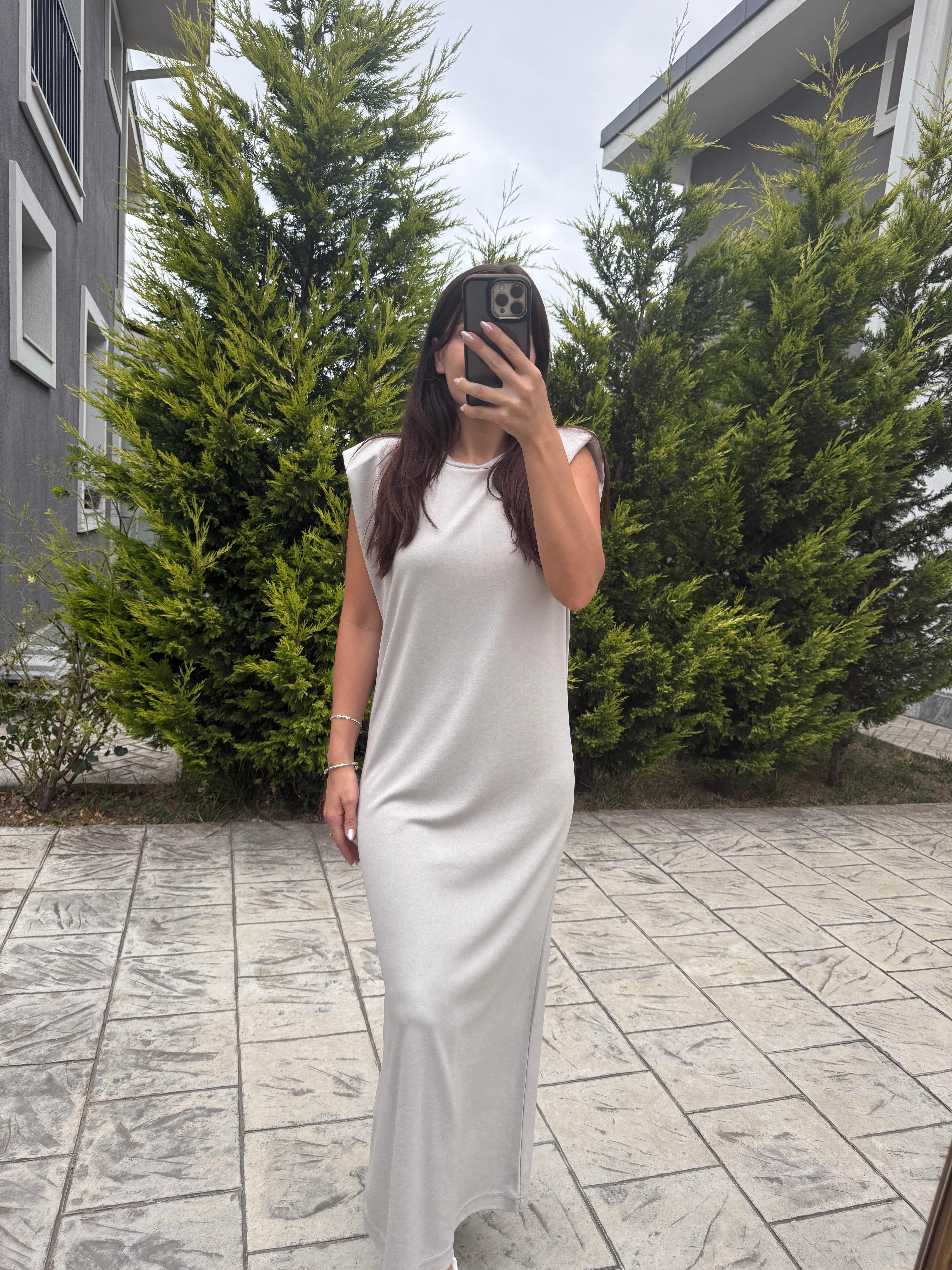 Taş Vatkalı Modal Midi Elbise
